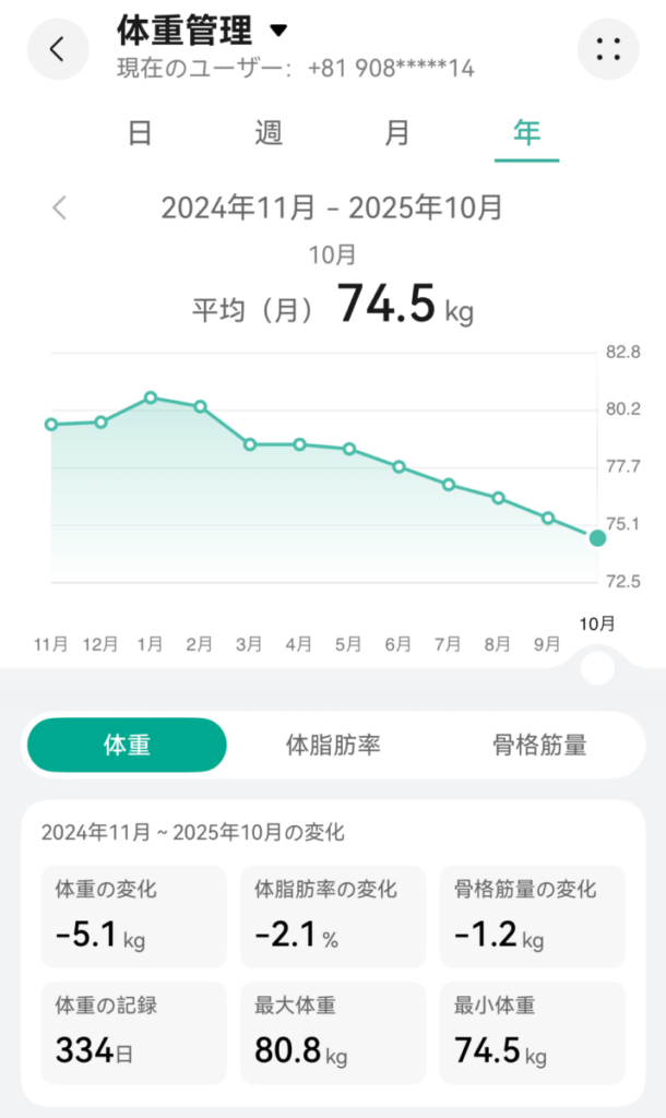 それともう一つの秘訣が、体重計の数値に一喜一憂しないこと。私は1日2回、朝起きた直後と夕食直後に測っています。