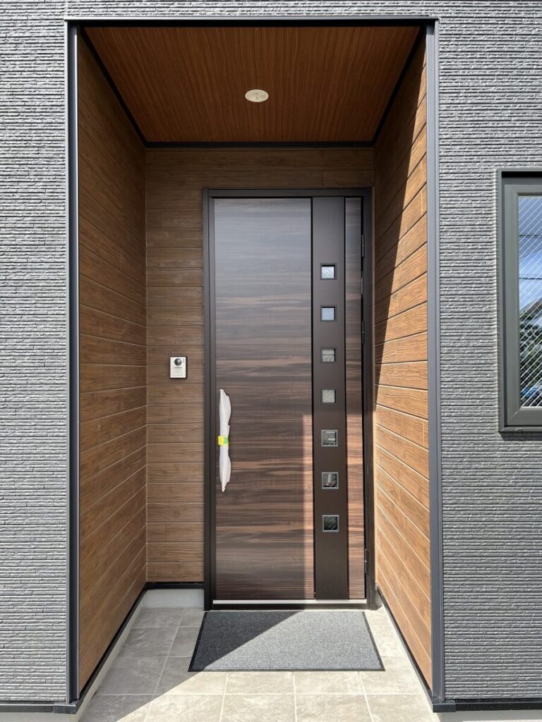四角い小さいガラス部分からは玄関に明かりを取り入れます