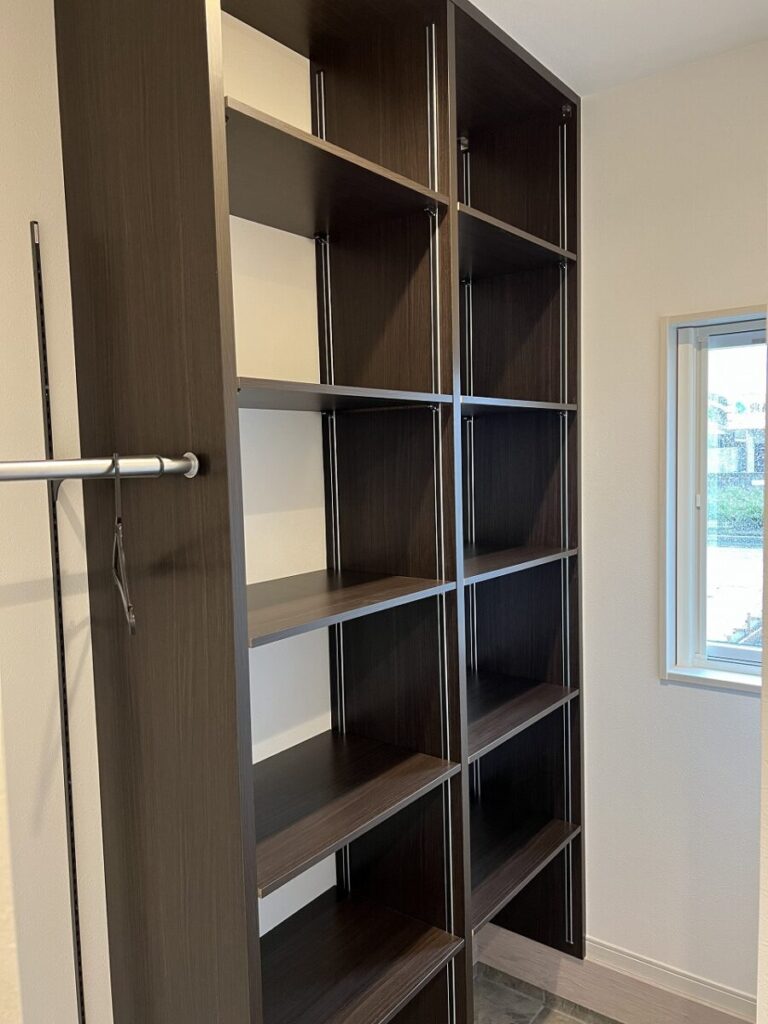 背面収納と並んだパントリーは可動棚なので収納する物によって