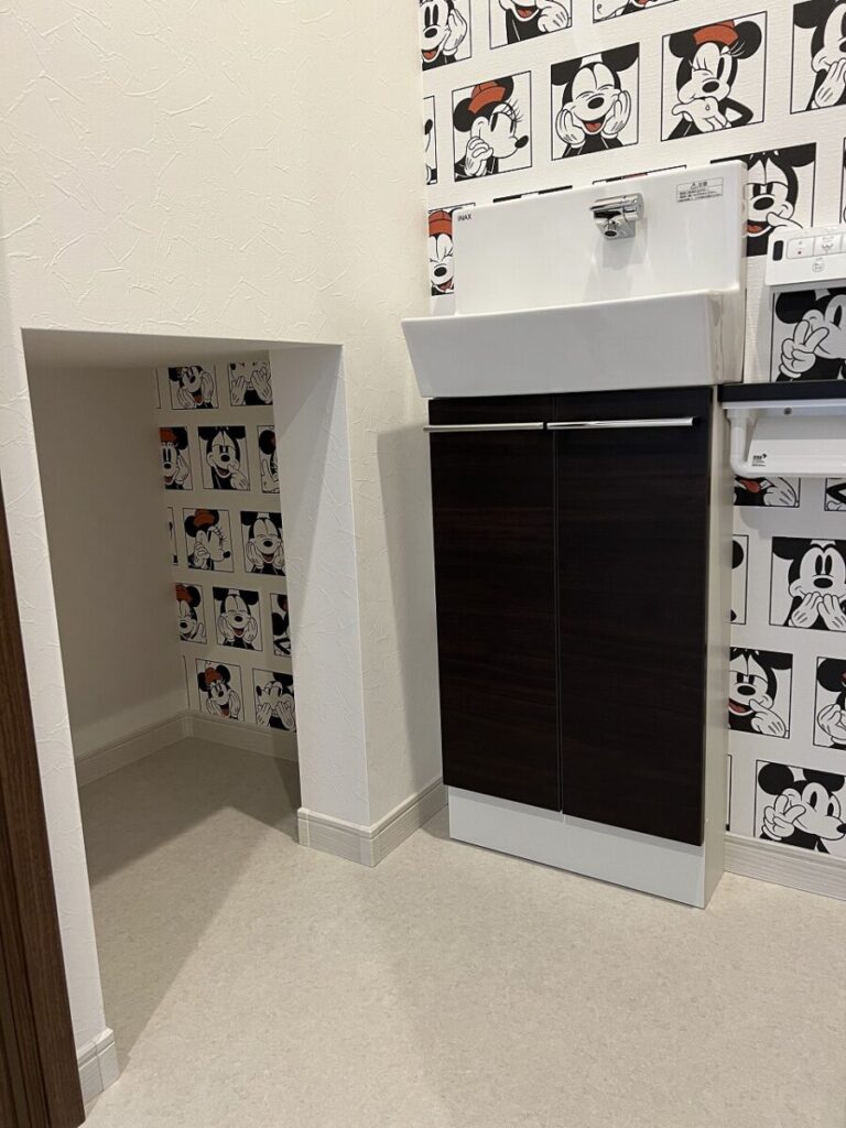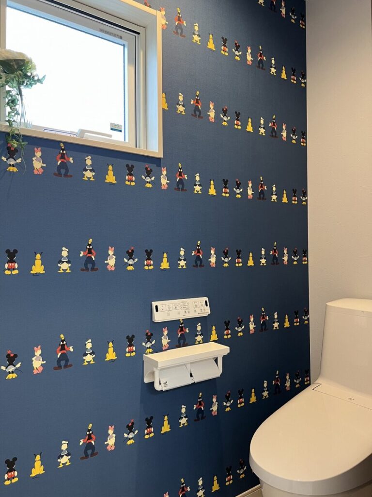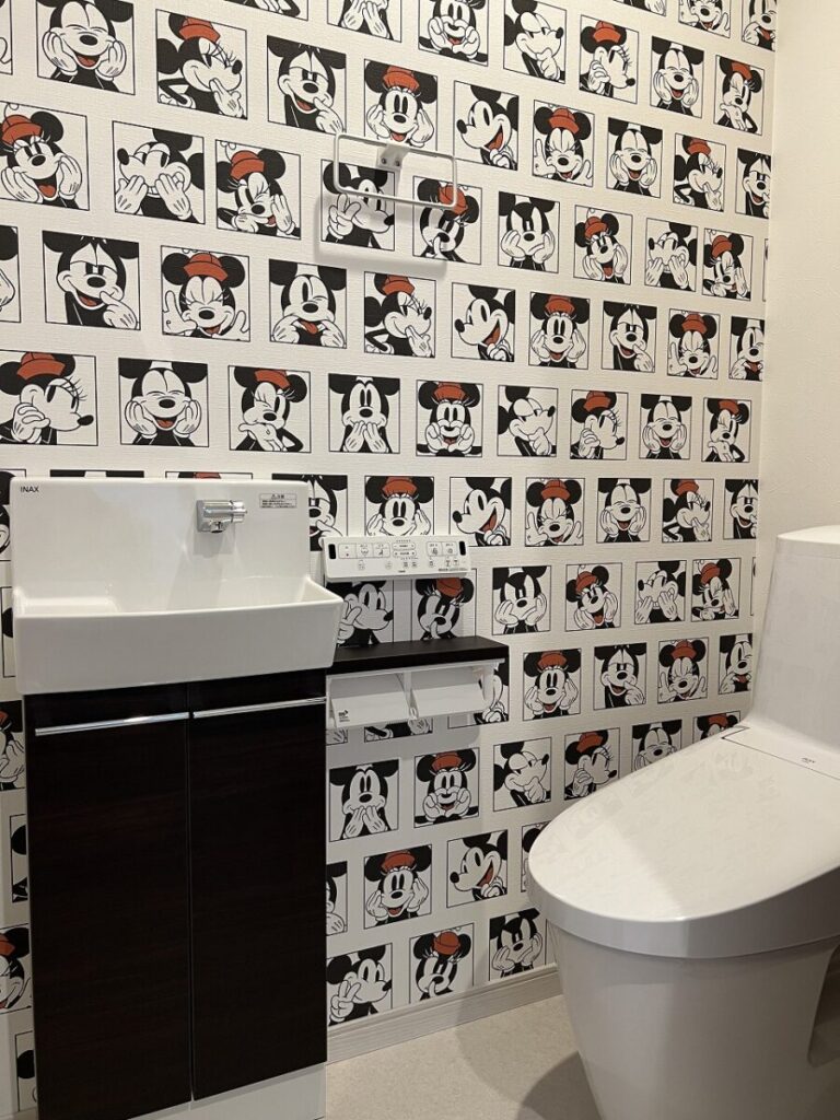 1階のトイレはミッキーとミニーのアクセントクロス壁が楽しいです♪