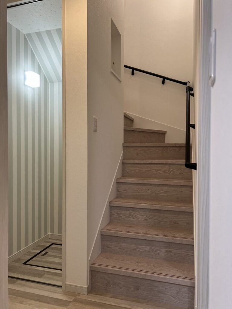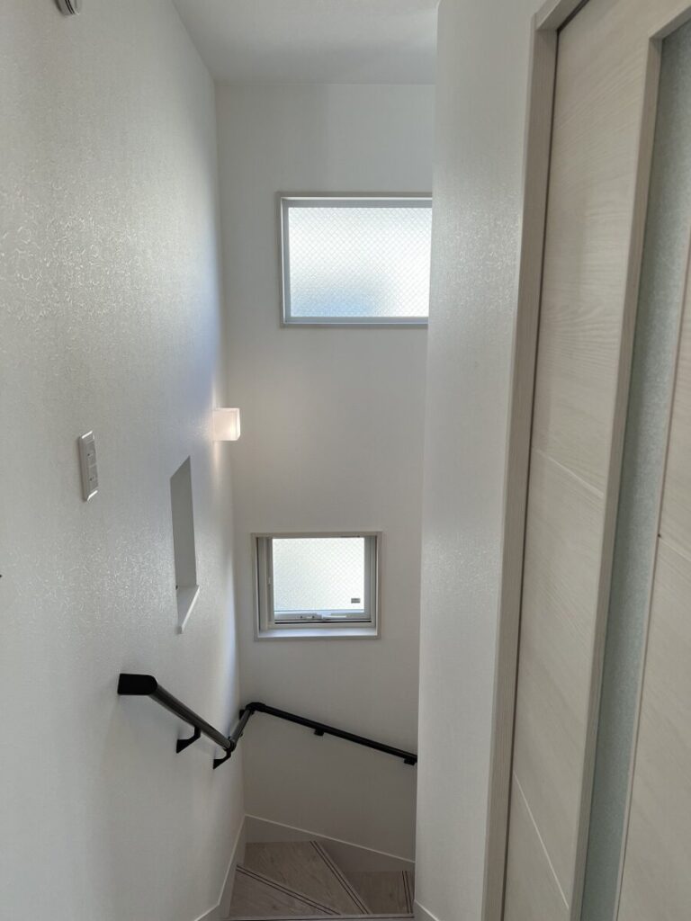 階段スペースには方角が北側になりますが窓を2か所設けております