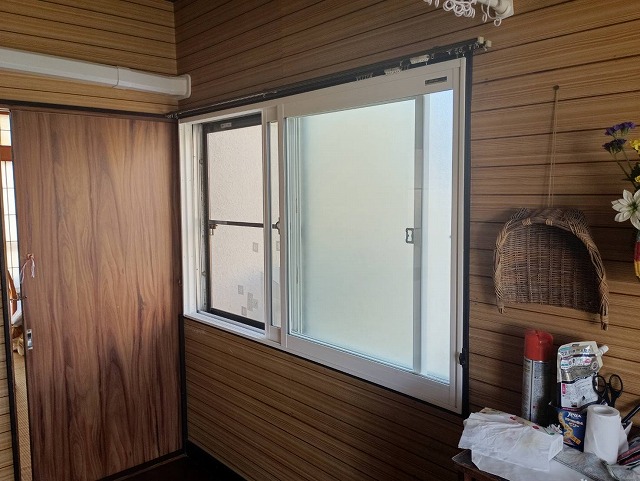 既存の窓枠の中に、もう一つ窓を取付ける作業になります。