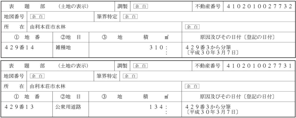 別に通路部分(由利本荘市水林429-13の内)約22.6㎡があります。