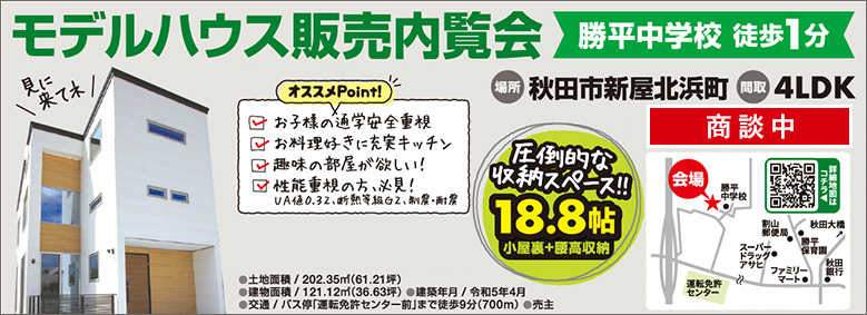 秋田市新屋北浜町 モデルハウス販売内覧会会場:秋田市新屋北浜町13番10号詳細を見る