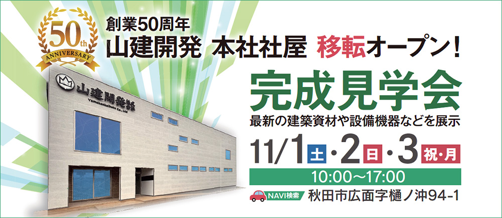 弊社は今年で創業50周年 本社を秋田市広面に移転します 新社屋の完成内覧会を開催します